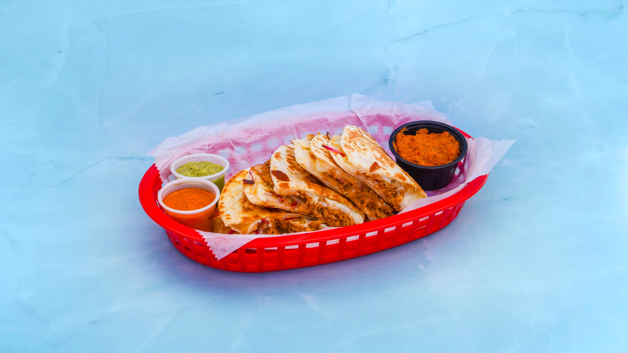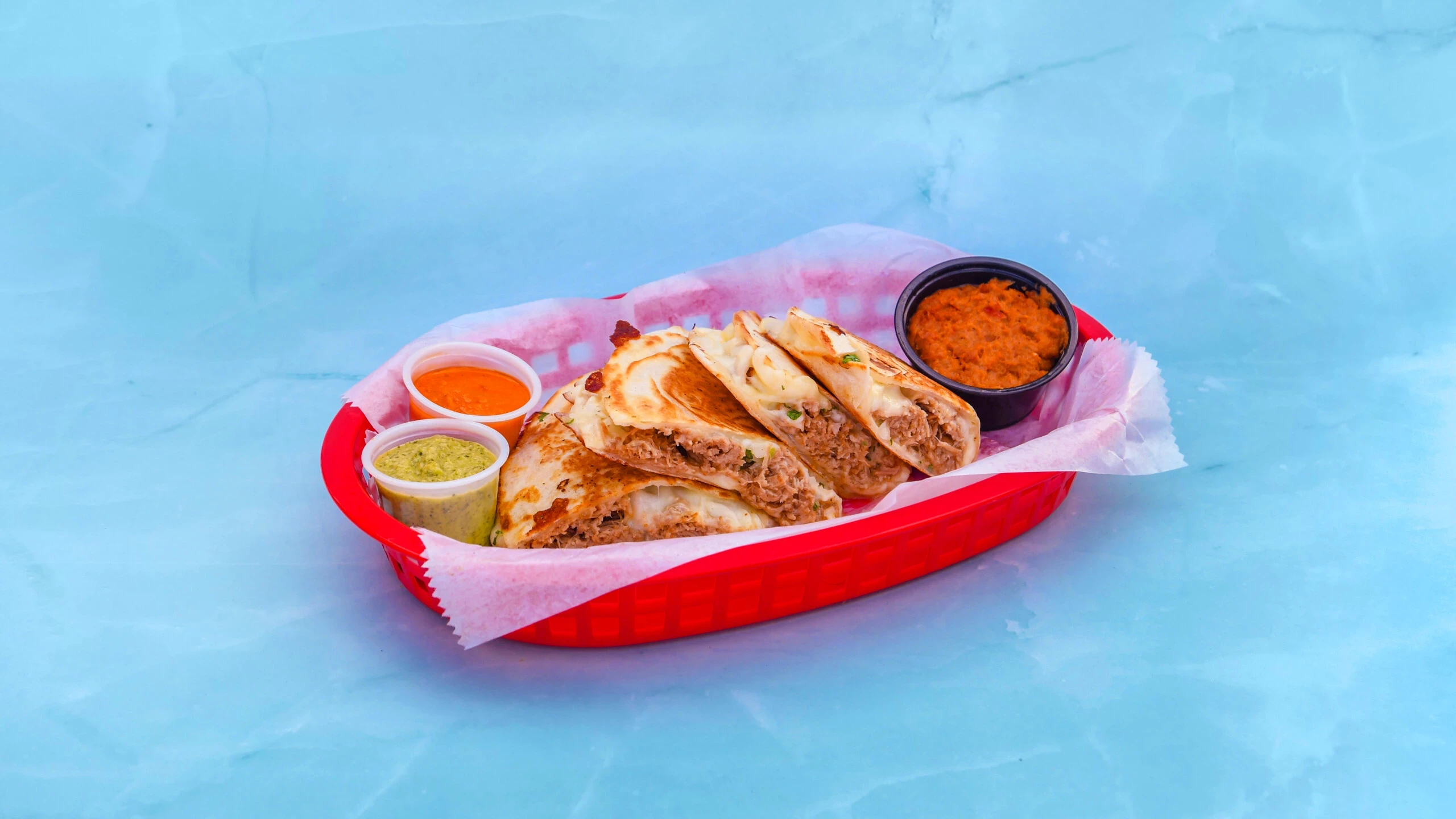 All quesadillas served with your choice of protein in 2 flour tortillas